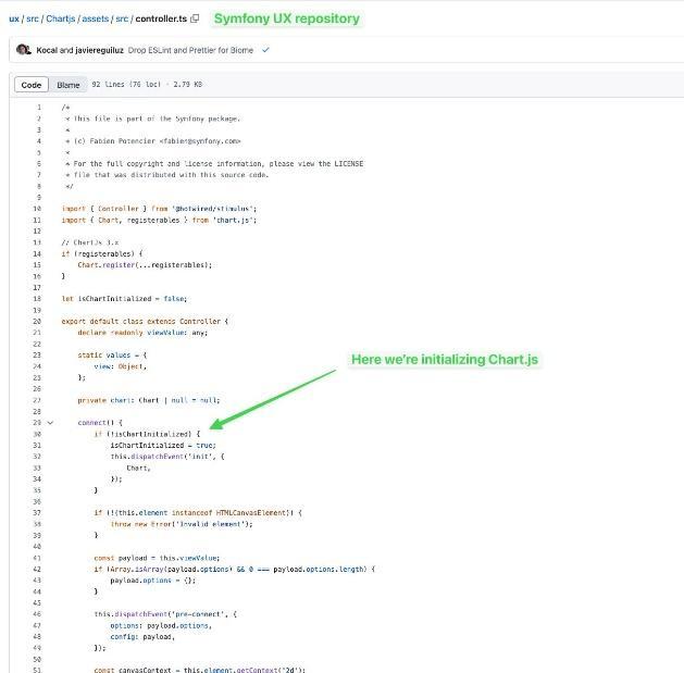 Moreover, Symfony UX takes this integration to a higher level. Instead of writing the data-controller="..." manually, it provides Twig functions like render_chart(...). So, rendering a chart is as simple as you might see on the example below.