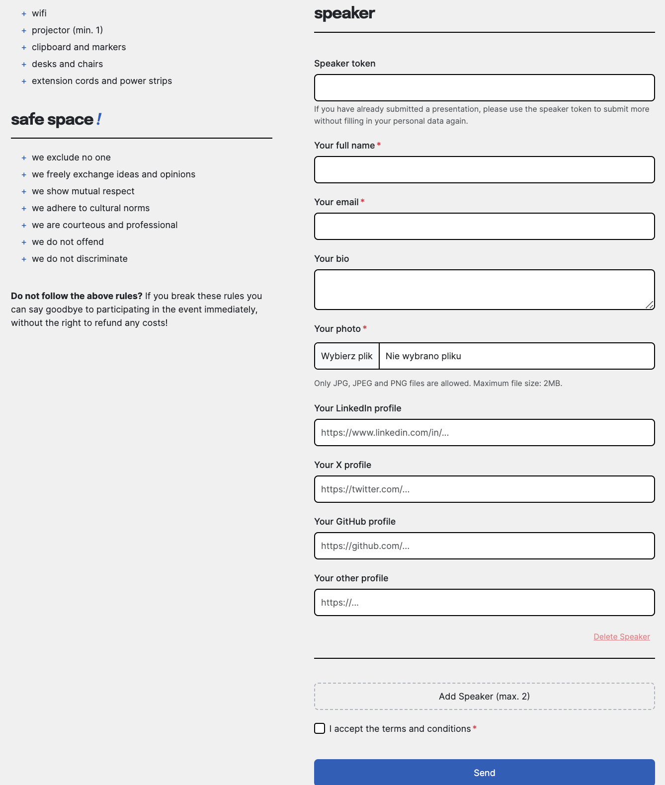 Thanks to the long-term relationship with the project’s stakeholders, and co-organization of the 2023 conference edition, features scoping was a breeze. We briefly agreed upon the desired functionalities and a fixed price, which is not a very common strategy in our industry.