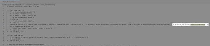 Below is a sample code that we can find on both the React and Stimulus pages. As you can imagine, your Symfony application already exists. Without rewriting your entire application to React, you can simply add Stimulus to your page.